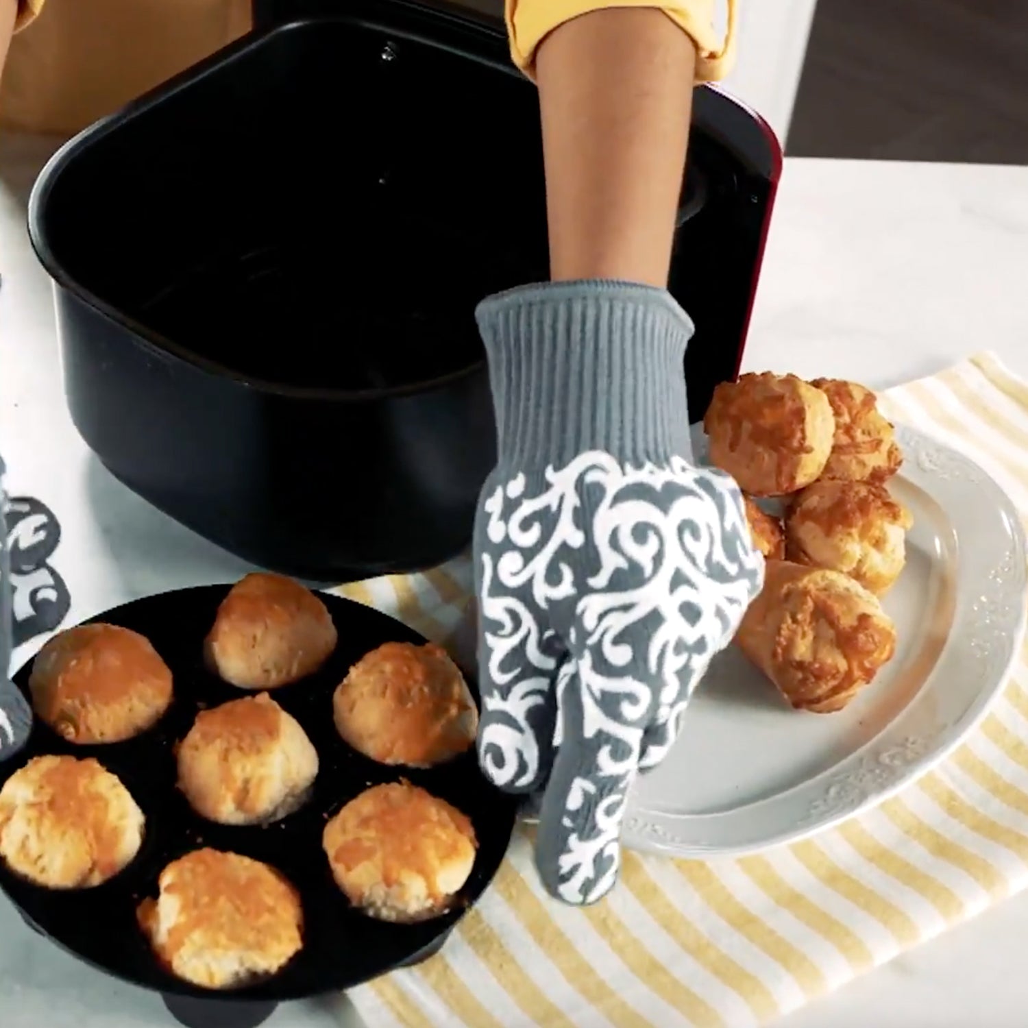 - Includes Air Fryer Steamer, fry tray, silicone muffin pan with a 7-qt capacity, and a recipe book with 23 recipes.