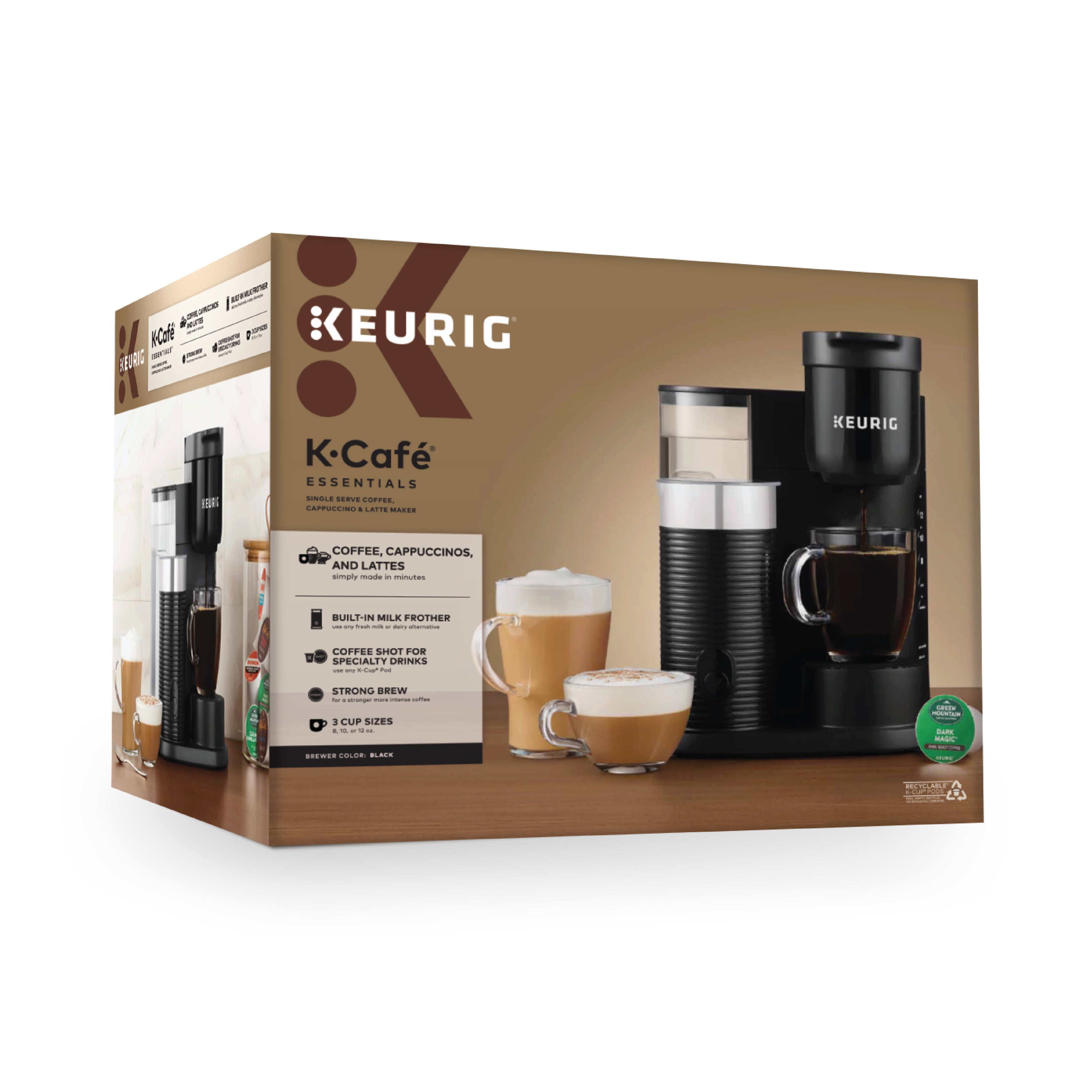 There’s nothing like taking time out of your day to relax and reward yourself with a delicious latte or an indulgent cappuccino from your local café, because after all, you deserve it. With the new Keurig K-Cafe Essentials Coffee Maker, you can easily brew delicious coffee or treat yourself to coffeehouse drinks anytime – from vanilla lattes to soothing cappuccinos, you can bring the coffeehouse home for a fraction of coffee shop prices. For specialty coffeehouse beverages, select the SHOT button for a 2 oz concentrated coffee shot. Then, use our built-in frother to add your favorite milk or dairy alternative, like oat, almond, or soy, and you’ll be savoring delicious barista-quality taste within minutes. Compatible with all of Keurig’s unsurpassed coffee varieties, just pop in any K-Cup pod, select your size, and choose the option of adding bolder flavor by pressing the STRONG button. Enjoy coffeehouse favorites for a fraction of the price, with the K-Cafe Essentials Single Serve Coffee, Latte & Cappuccino Maker. Available exclusively at Walmart.MAKING A LATTE OR A CAPPUCCINO In 3 easy steps: BREW your favorite Keurig® K-Cup® pod.FROTH any milk of your choosing using the built-in milk frother.ENJOY your Keurig 3-step specialty beverage!