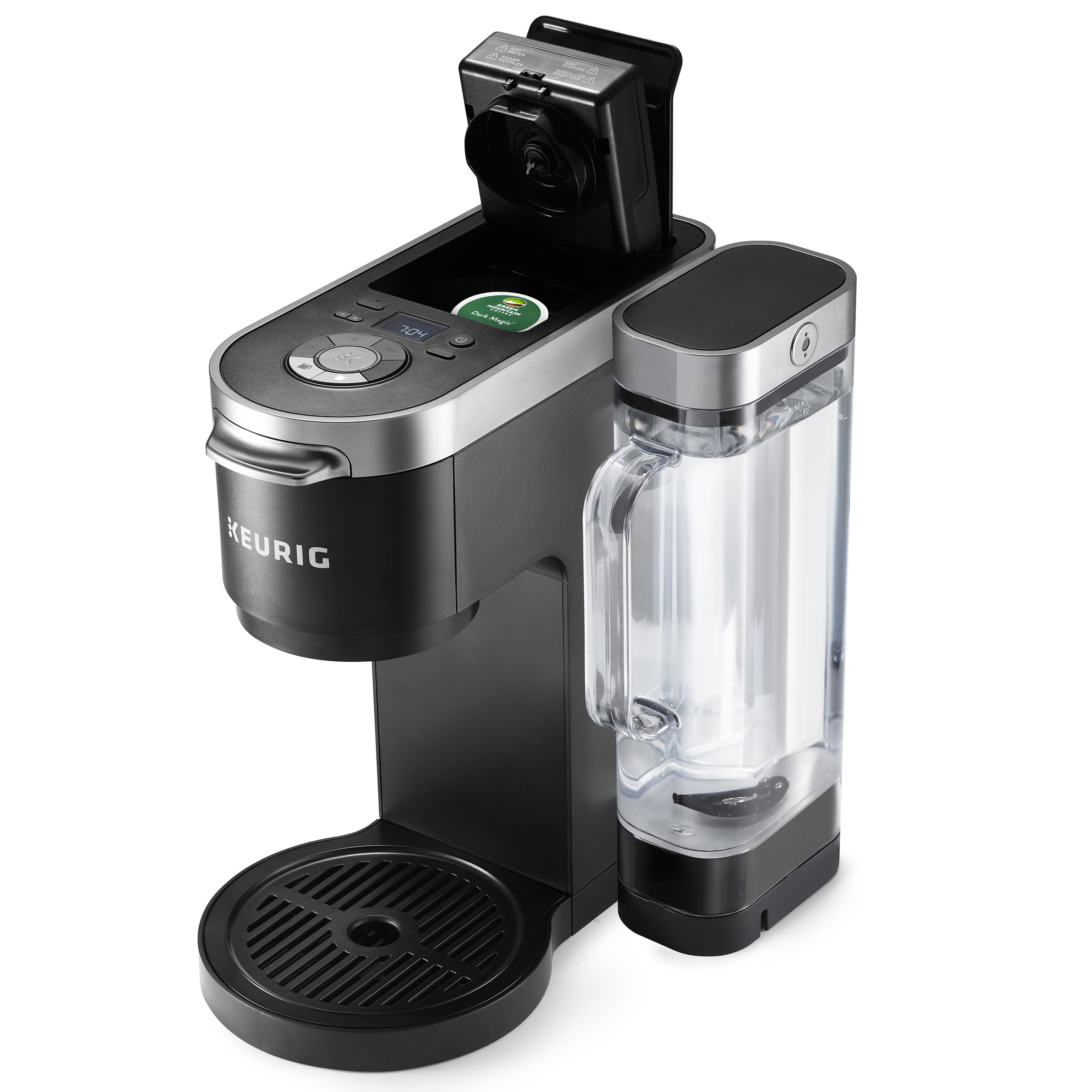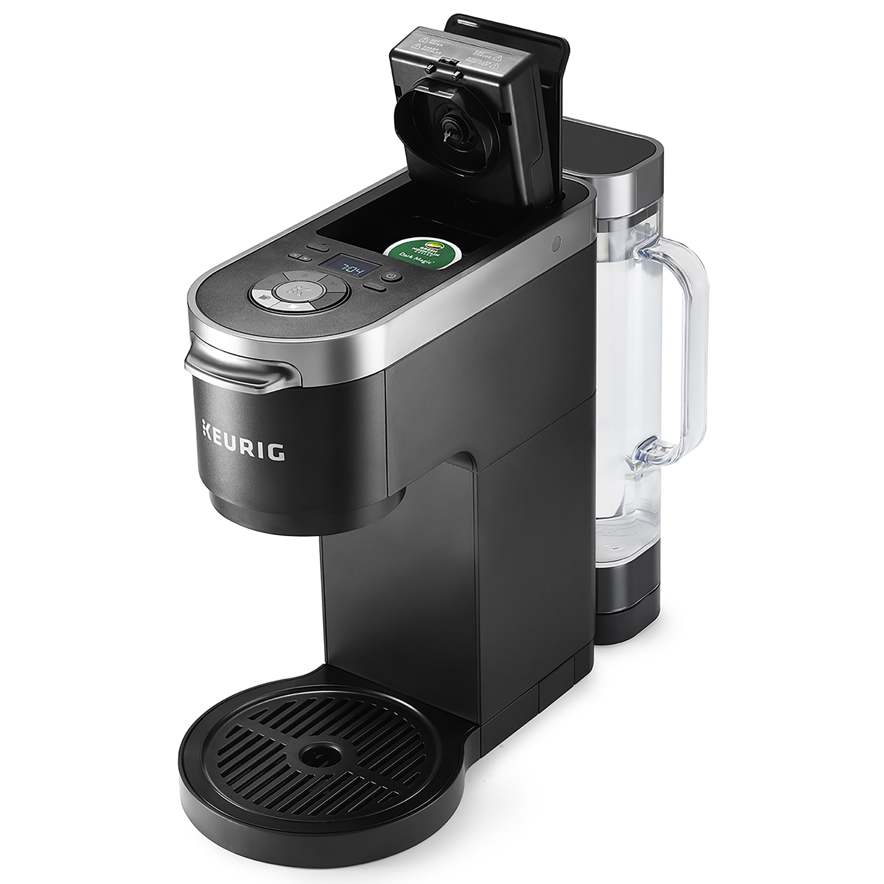 The K-Duo Plus Single Serve & Carafe Coffee Maker is a versatile brewer using both K-Cup pods and ground coffee to brew a cup and a carafe of your favorites. The 12-cup thermal carafe keeps your coffee warm for up to 2 hours, and the Pause & Pour feature makes serving a snap! No need to wait for the entire carafe to brew – the Keurig K-Duo Plus coffee maker can be paused mid-brew for 20 seconds, so you can pour fresh, hot coffee right away. Or set your preferred brew time up to 24 hours in advance with Programmable Carafe Auto Brew. The sleek design of the black K-Duo Plus coffee maker provides an eye-catching element of style and our first ever Multi-Position Water Reservoir can be situated on the left, right, or back, ensuring the optimal configuration for your countertop. Use the Strong Brew button for a bolder, more intense single cup and carafe. With multiple brew sizes, you can make a 6, 8, 10, or 12-cup carafe for large gatherings or just for you. Brew the perfect amount of fresh, full-flavored coffee whether you’re hosting friends or just enjoying a cup – and a moment – to yourself!