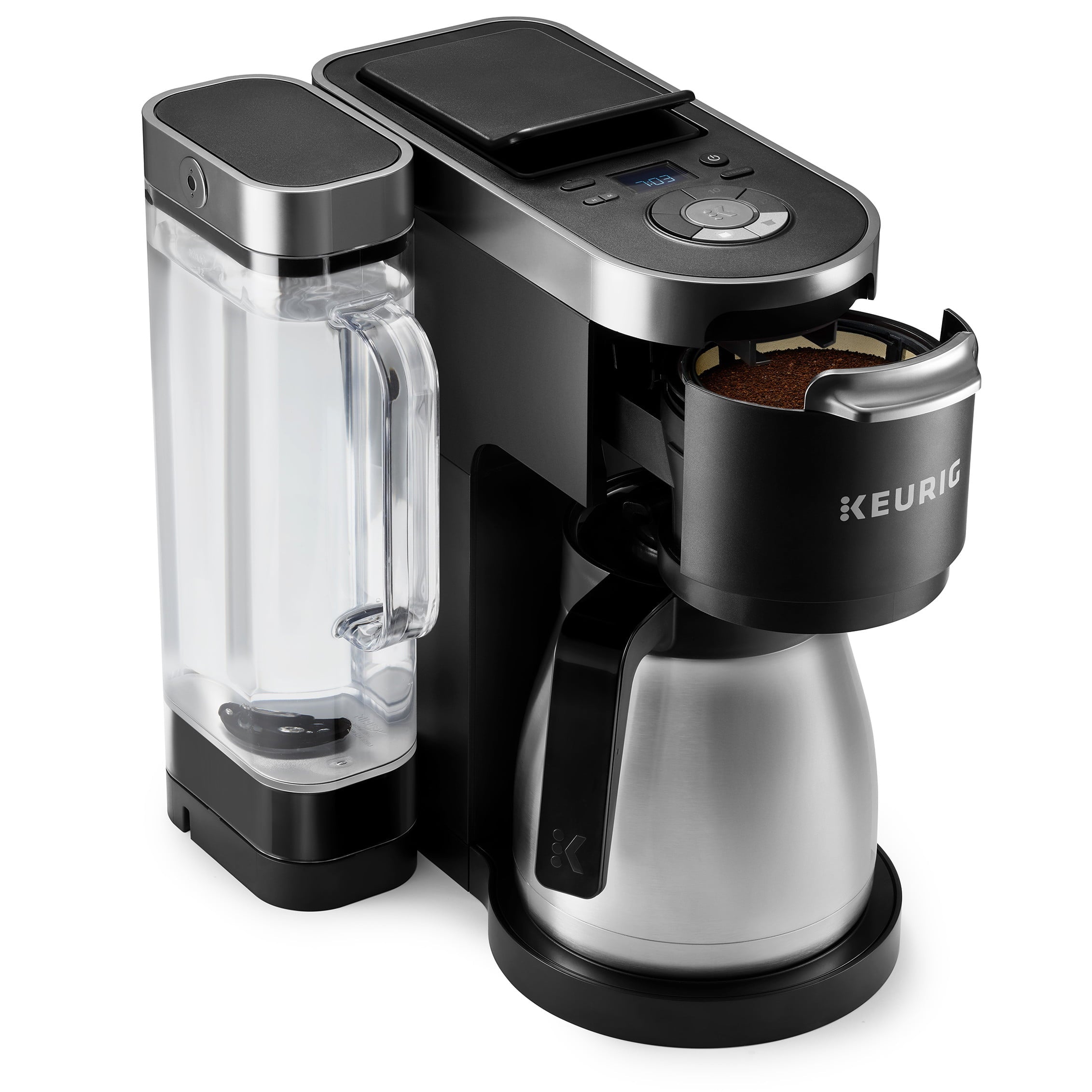 The K-Duo Plus Single Serve & Carafe Coffee Maker is a versatile brewer using both K-Cup pods and ground coffee to brew a cup and a carafe of your favorites. The 12-cup thermal carafe keeps your coffee warm for up to 2 hours, and the Pause & Pour feature makes...