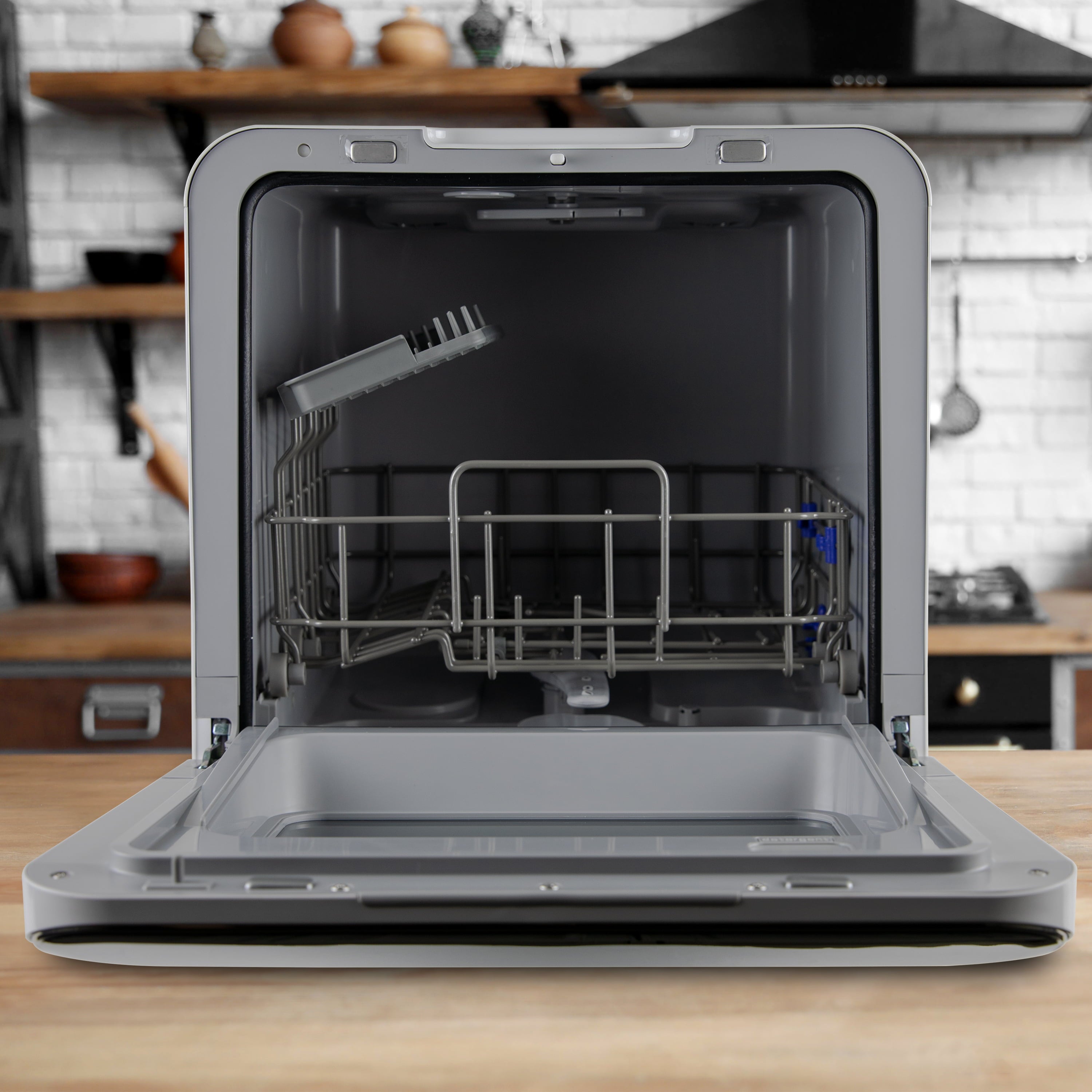 - COMPACT DESIGN: The portable countertop design is perfect for use in small spaces including apartments, dorms, and RVs; clean up to 2 place settings of dishwasher safe dishes in as little as 40 minutes