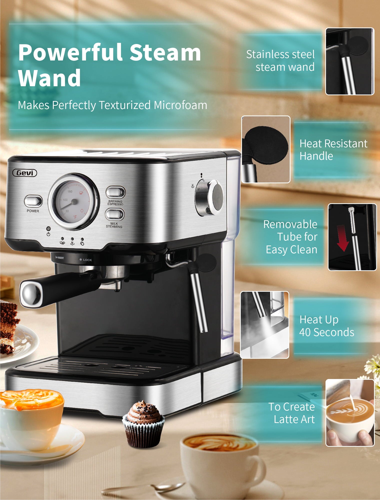 Gevi Espresso Machine with steamer 15 Bar Cappuccino Coffee Maker for Latte Mocha