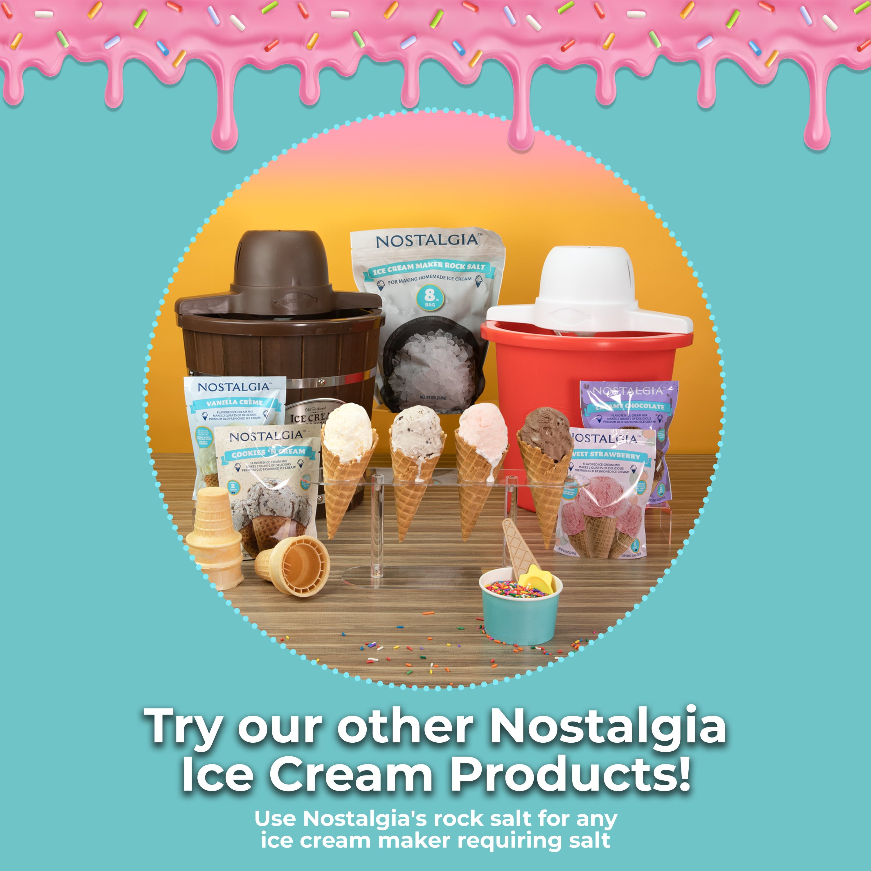 - NOSTALGIA ICE CREAM MIXES: Unit works perfectly with all Nostalgia ice cream mixes